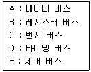 버스는 데이터 버스, 주소 버스, 제어 버스로 구분된다. 따라서 정답은 A, C, E이다.