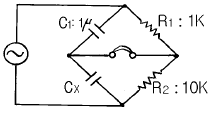 [전자측정] 다음 교류 브리지에서 평형이 이루어졌을 때 Cx의 값은?