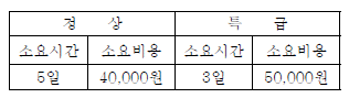 다음 표를 이용하여 비용 구배(cost slope)를 구하면 얼마인가?
