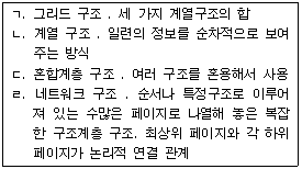 다음 중 다음 웹사이트의 구조와 설명이 바르게 짝지어진 것만 나열한 것은?