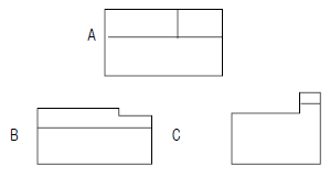 [임의 구분] 다음 그림은 제 3각법에 의해 그린 투상도이다. 평면도는 어느 것인가?