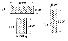 [조경시공구조학] 다음 그림은 보의 단면적을 도해한 것이다. 연직 방향으로 하중이 작용할 때 휨에 대한 강도의 비율 A:B:C로 맞는 것은 어느 것인가? (단, 강도의 비율은 단면계수 (Z)로 구한다.)