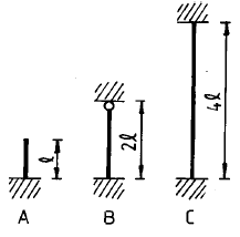 [조경시공구조학] 다음은 장주(長柱)를 도해한 것이다. 장주의 강도를 크기 순서대로 옳게 표시한 것은 어느 것인가? (단, 기둥의 재질과 단면 크기는 모두 동일하다)