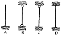 [조경시공구조학] 다음 그림은 기둥의 지지상태를 나타낸 것이다. 기둥의 재질과 단면의 크기가 동일하다고 가정할 때 좌굴하중이 큰 순서대로 나열된 것은?(A:일단자유 타단고정, B:양단힌지, C:일단힌지 타단고정, D:양단고정)
