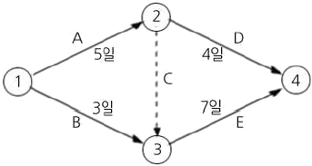 - ② B작업의 여유시간은 3일이다.