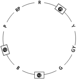 - Pk(분홍색) < YR(노란빛 주황색) < Rr(빨간빛 주황색) < BG(청록색) < Br(갈색) < PB(보라색)