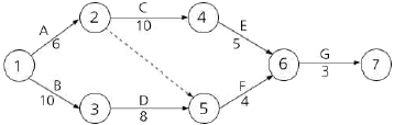 [조경시공구조학] 다음 네트워크 공정표에서 크리티컬패스(CP, critical path)의 순서로 옳은 것은?