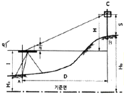 [조경시공구조학] 그림과 같을 때의 표고 Hb는? (단, n=11.5, D=40m, S=1.50m, l=1.10m, Ha=25.85)