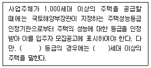 [공동주택관리실무(주관식)] 주택법령 및 주택건설기준 등에 관한 규정상 주택성능등급의 표시 등에 관한 내용이다. ( )안에 들어갈 주택성능등급의 종류 및 숫자를 쓰시오.