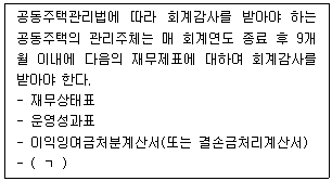 [공동주택관리실무(주관식)] 공동주택관리법령상 관리주체에 대한 회계감사에 관한 내용이다. ( )에 들어갈 용어를 쓰시오.