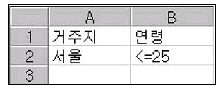 고급 필터 기능을 활용하기 위해 다음과 같이 필터 조건을 지정하였을 때의 검색 결과에 대한 설명으로 올바른 것은?