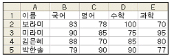 [스프레드시트 일반] 아래 시트의 1행부터 5행까지 전체자료를 범위로 지정하여 차트를 작성하려고 한다. 가장 적당하지 않은 차트는?