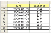 다음 그림과 같이 월~금요일까지는 '업무'로, 토요일과 일요일에는 '휴무'로 표시하고자 할 때 [B2] 셀에 입력해야 할 함수식으로 옳지 않은 것은?