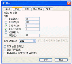 다음과 같이 축 서식 대화상자의 설정 값을 적용했을 때 나타나는 차트로 옳은 것은?