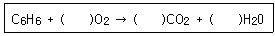 호기성 상태에서 벤젠의 생물학적 분해를 표현한 다음의 화학양론식 중 괄호에 채워질 수를 순서대로 나열한 것은?