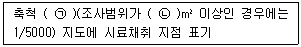 토양오염 정밀조사결과보고서에 수록되는 시료채취 지점도 및 오염분포도에 표기되어 있는 축척에 관한 설명으로 ( )에 알맞은 것은?