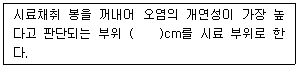 토양오염관리대상시설지역에서 시료의 채취 및 보관에 관한 설명으로 ( )에 옳은 것은? (단, 봉이 들어있는 타격식, 나선식 토양시추 장비 기준)