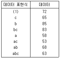 [실험계획법] 어떤 화학물질을 촉매반응시켜 촉매(A) 2종류, 반응온도(B) 2종류, 원료의 농도(C) 2종류로 하여 23요인실험으로 합성률에 미치는 영향을 검토하여 다음의 표와 같은 데이터를 얻었다. B의 주 효과는 얼마인가?