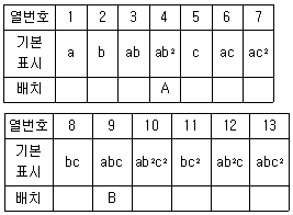 [실험계획법] L27(313)형 직교배열표에서 인자 A, B 요인이 4열과 9열에 배치되어 있다. A×B는 어느열에 배치해야 하는가?