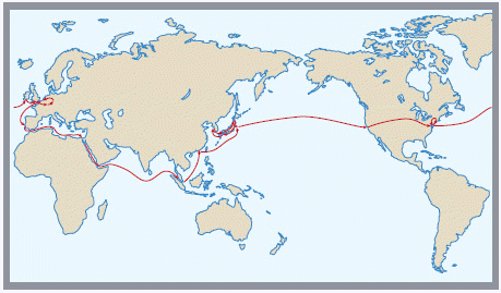[과목 구분 없음] 지도는 19세기 후반 어느 인물의 활동 경로를 나타낸 것이다. 이 인물에 대한 설명으로 옳지 않은 것은? [2점](오류 신고가 접수된 문제입니다. 반드시 정답과 해설을 확인하시기 바랍니다.)
