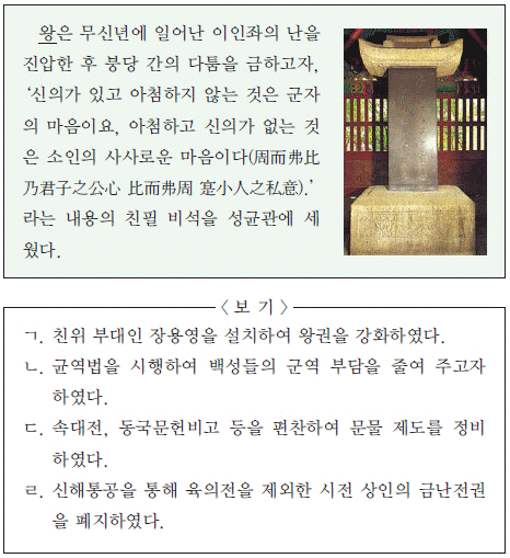밑줄 그은‘왕’이 추진한 정책으로 옳은 것을 <보기>에서 고른 것은? [3점]