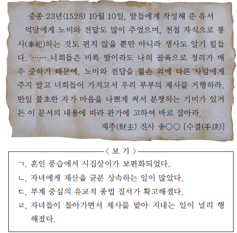 다음 자료를 통해 추론할 수 있는 사회 모습으로 적절한 것을 <보기>에서 고른 것은? [2점]