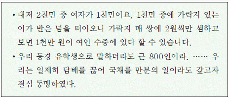 - 국민들의 성금으로 국권을 회복하자는 경제적 구국 운동이었다.