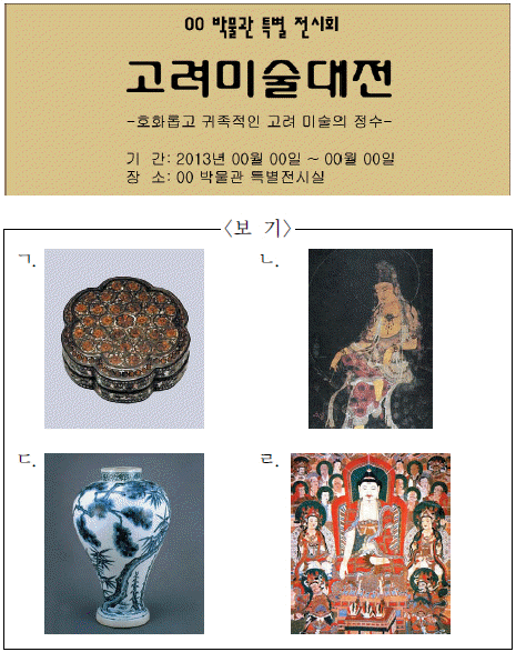 [과목 구분 없음] 다음 전시회에 전시될 문화유산으로 적절한 것을 <보기>에서 고른 것은? [3점]