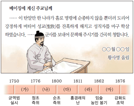 다음 편지가 작성된 시기를 연표에서 옳게 고른 것은? [2점]