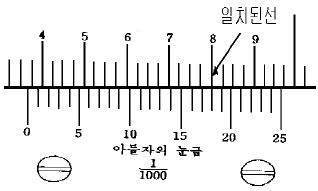최소측정값이 1/1000인치인 버니어 캘리퍼스의 아래 그림의 측정값은 얼마인가?