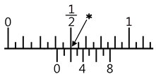 그림의 인치식 버니어 캘리퍼스(최소 측정값 1/128in)에서 * 표시한 눈금을 옳게 읽은 것은?
