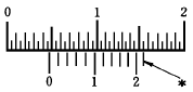 최소 측정값이 1/50 mm인 버니어 캘리퍼스에서 다음 그림의 측정값은 얼마인가?