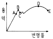 그림과 같은 응력-변형률 선도에서, 보통 기체역학적으로 인장강도라고 생각되는 점은?