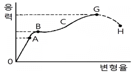 그림과 같은 응력-변형률 곡선에서 틀린 것은?