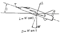 비행기가 그림과 같이 θ만큼 경사진 직선 비행경로를 따라 등속도로 상승할 때, 비행기에 작용하는 비행방향의 추력을 옳게 나타낸 것은?