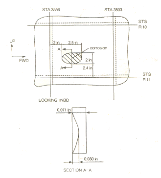 그림에서 부식에 의한 손상의 깊이는 몇 in 인가?