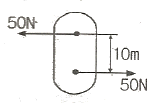 그림과 같이 항공기 부재에 크기가 같고 장향이 반대인 50N 의 두 힘이 수직거리가 10 m 만큼 떨어져 작용하고 있다면 이러한 짝힘(Couple Force)에 의한 모멘트는 몇 N-m 인가?