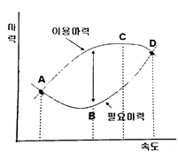 그래프상에 수평비행이 가능한 최소 속도를 나타낸 점은?