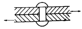 그림과 같은 리벳이음 단면에서 리벳직경이 5mm, 두 판재의 인장력 100kgf 이면 리벳단면에 발생하는 전단응력은 양 몇 kgf/mm2인가?