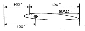 그림과 같이 날개에서 C.G(Center of gravity)는 MAC(Mean aerodynamic chord)의 백분율로 몇 % 인가?