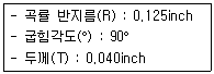 항공기의 외피 수리에서 다음의 [조건]에 의하면 알루미늄 판재의 굽힘 허용값은 약 몇 inch 인가?