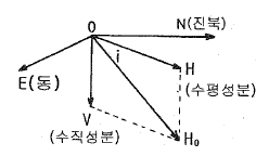 자기 컴파스가 위도에 따라 기울어지는 현상은 무엇 때문인가?