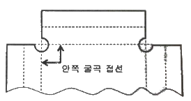 판재를 굴곡작업하기 위한 그림과 같은 도면에서 굴곡접선의 교차부분에 균열을 방지하기위한 구멍의 명칭은?