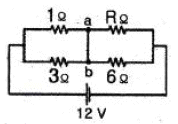 그림과 같은 회로도에서 a, b간에 전류가 흐르지 않도록 하기 위해서는 저항R은 몇 Ω으로 해야 하는가?