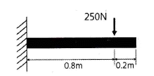 그림과 같이 벽으로부터 0.8m 지점에 250N 의 집중하중이 작용하는 1.0m 길이의 보에 대한 굽힘모멘트 선도는?