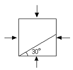[암석역학] 도면에서와 같이 평면요소에 σx=10MPa, σy=4MPa의 수직응력이 작용하는 경우, 경사면위에 발생하는 수직응력은 얼마인가?