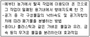 다음과 같은 특성을 지닌 폐기물 선별벙법은?